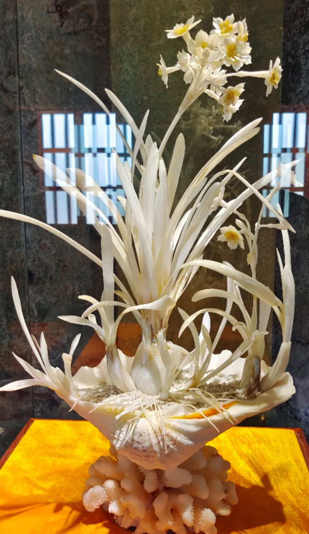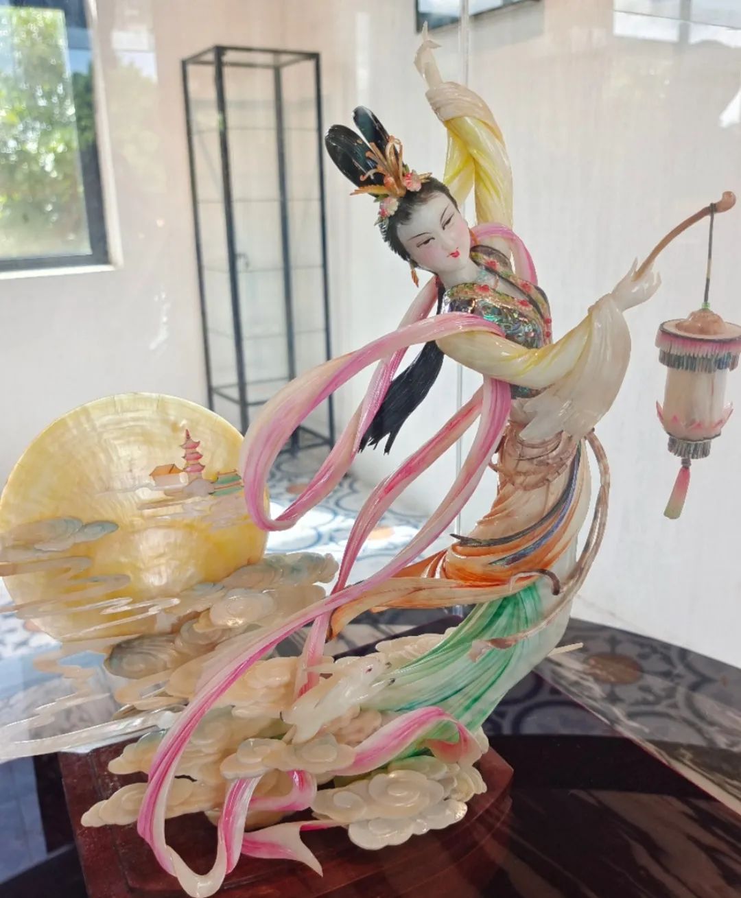 蔡濤「嫦娥奔月」立體貝雕馬振澤「水仙花」立體貝雕