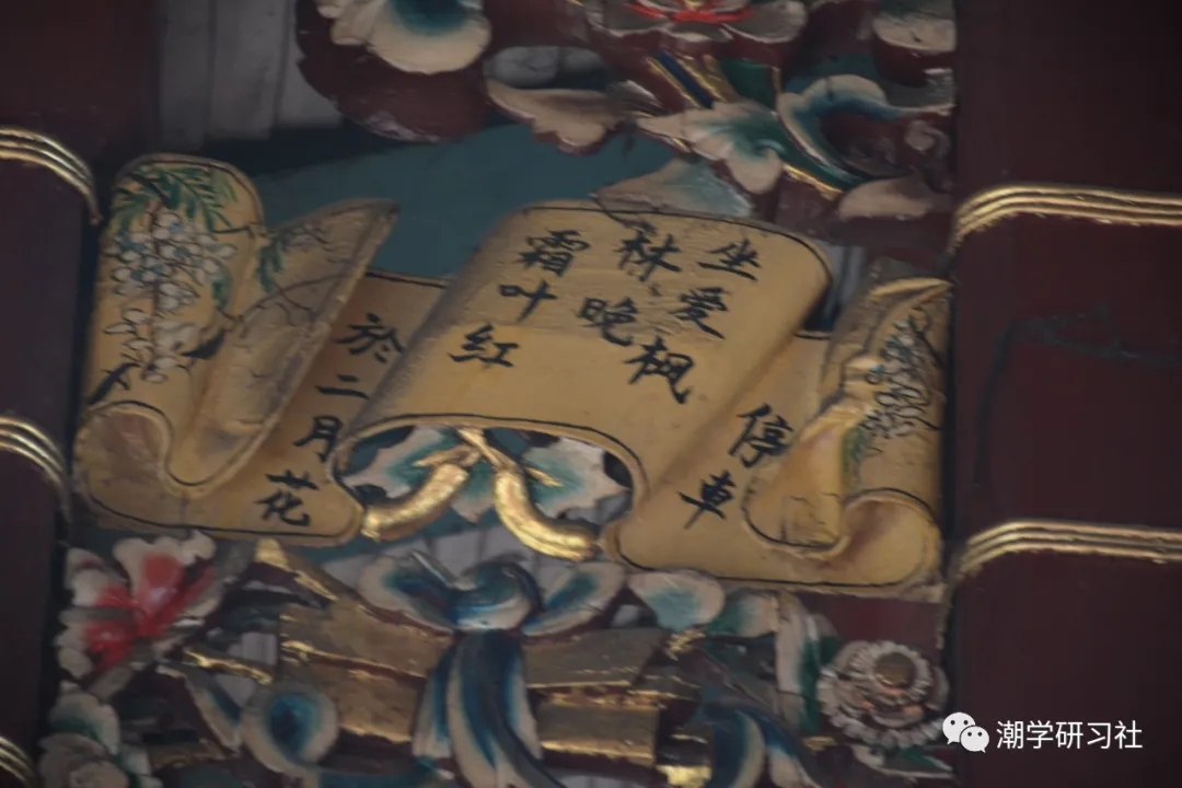 古詩詞書寫在牆壁屋樑,除了領域古人智慧,還能夠欣賞精美的書法,好學好讀體現在細節處。高掛的竹編油紙燈籠是一項非常精巧的古老手工藝,所題寫的字顯示著必要的信息,這是潮人盼望“闔家平安”的誠心期許,燭光搖曳,明燈映照我心。