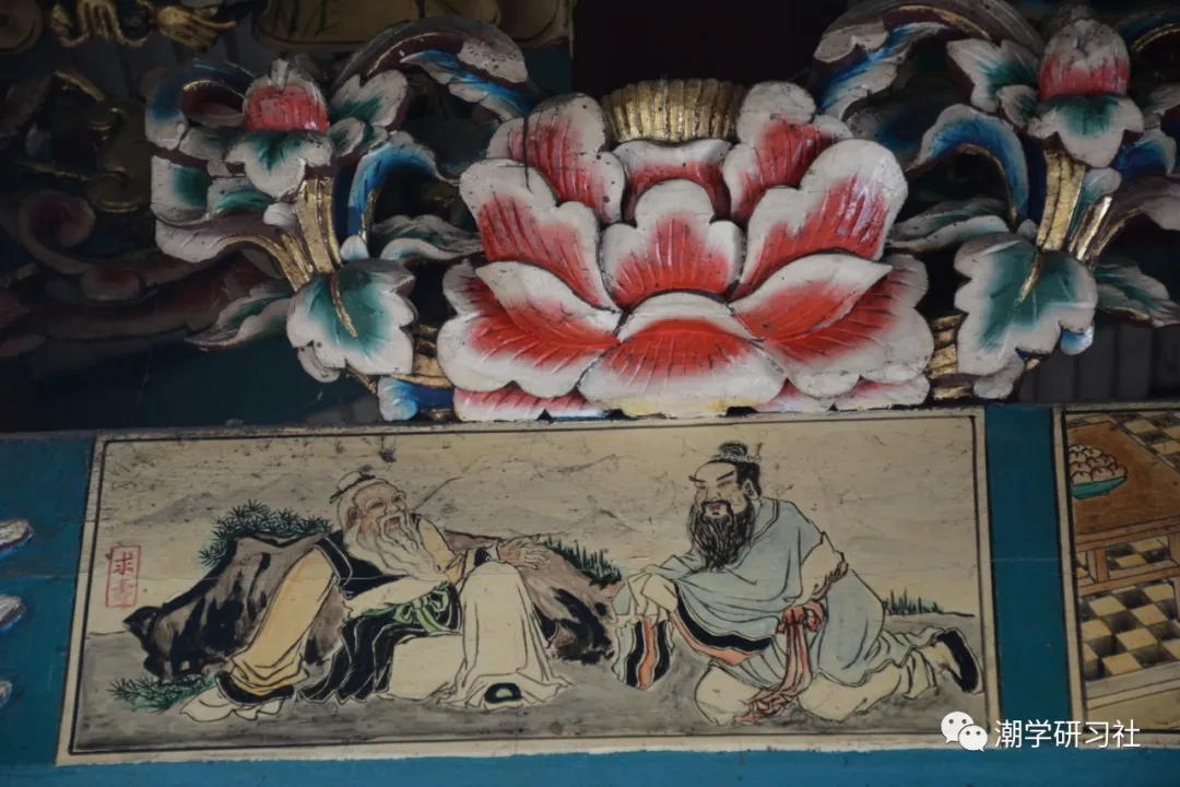 樑上的壁畫同樣講述著故事,尹喜求書便是一例。尹喜,《莊子·天下》將他和老子並列,稱為“古之博大真人”。官至周代大夫,時任大散關令,遇老子西出函谷關,求得《道德經》五千言。《道德經》素樸、平易、恬淡、柔順、無爭等特性,默化出潮人包容的性格。