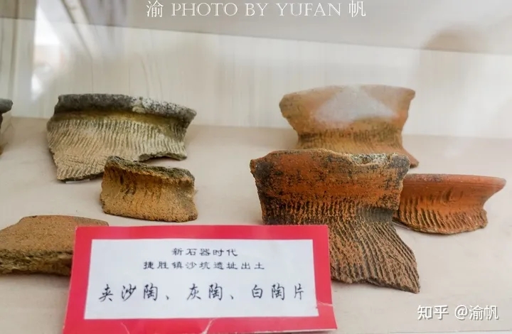 在他的工作室邊上,我們看到陳列著大量的陶土碎片,他說這就是古時候的捷勝泥塑,其歷史可以追溯到6000年前的新石器時期。“沙坑文化”遺址曾出土了泥塑物品及碎片,如:陶碗、陶罐、瓦片等。不僅展示了南中國的史前文明,還可以確認捷勝的泥塑的悠久歷史,高超工藝和獨特風格。