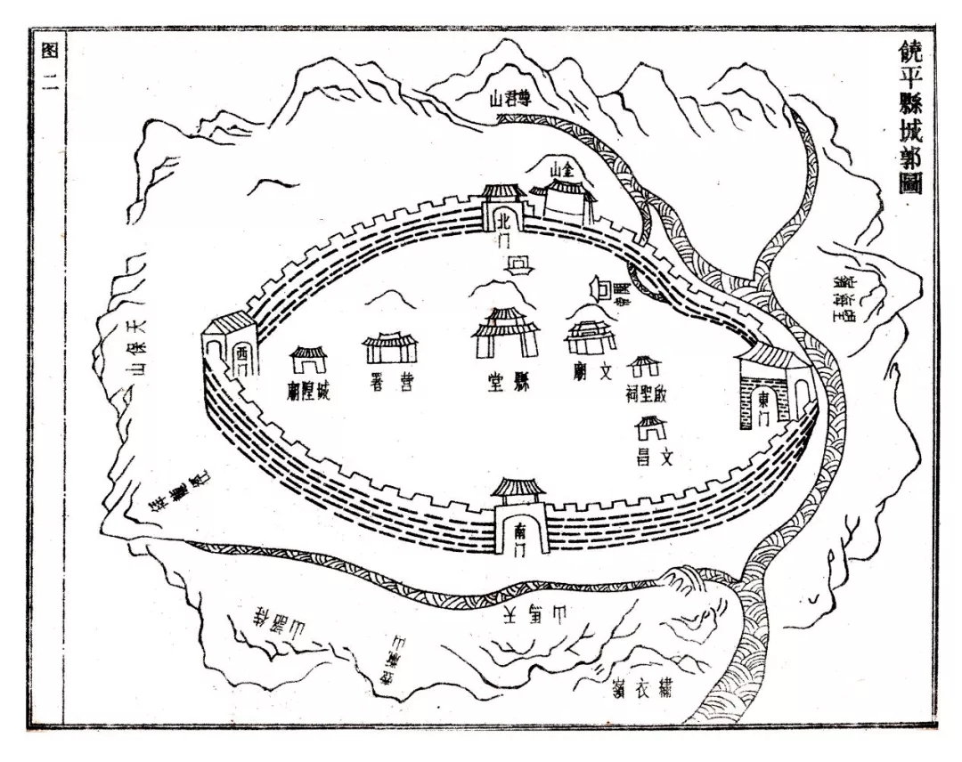 《饒平縣志》載饒平城、衙:“邑地形勝,北枕尊君峰,南禦天馬山,可謂賓主盡美。輪奐軒敞,甲於潮諸屬邑。”城裏又並立三山,山前皆築衙廟:縣衙君中,左文廟,右武衙。城外近環溪林,遠繞群山,畢具氣勢形勝。”