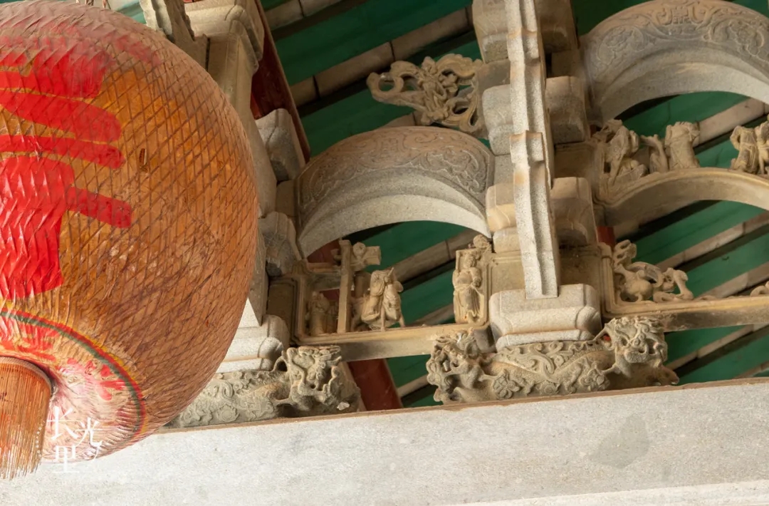 建於清康熙年間的黃氏大宗祠,原本有大量精美潮州石雕構件,在特殊年代中被大量破壞,但從殘存的構件中仍能看到石雕的精緻程度。