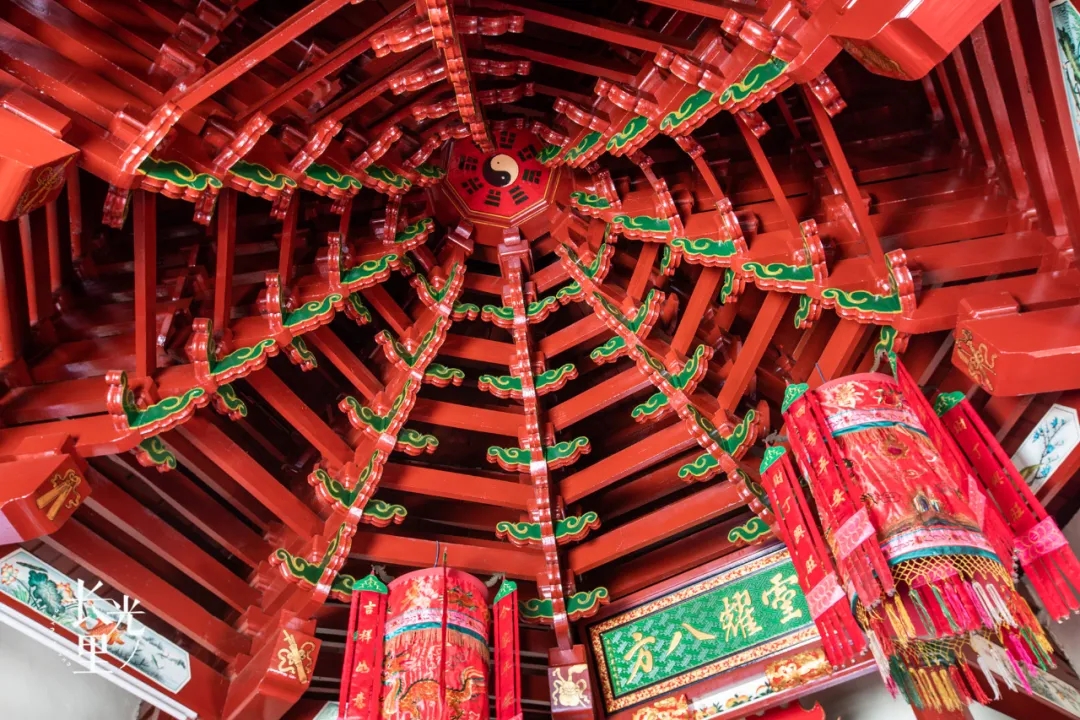 到八角宮中一定要擡起頭,才能看到廟內精緻的八角藻井,據傳廟中有99個斗拱。