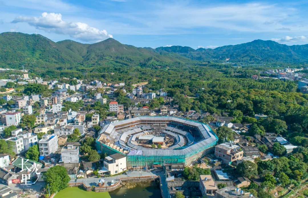 裏秀樓坐落於青山綠水之中,周邊基本沒有現代建築物影響土樓觀景的完整性,非常難得。
