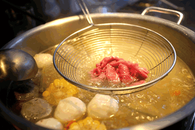 只是一鍋清湯,將切好的牛放入鍋中三起三落。爽脆香甜的牛肉配上調製好的醬料,口中回味的,是牛肉最本真的味道。