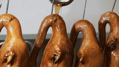 將南姜、八角、小茴香、桂皮和豆蔻等香料入鍋,慢火熬煮鵝肉,之後再浸潤、懸掛,滷好的鵝肉不僅可以上餐桌,也是祭祀先祖的不二之選。