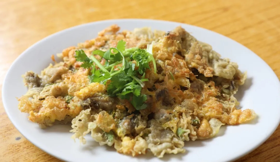 蠔烙是潮汕地方特色小食,用薯粉加上海蠣雞蛋,放在平底煎鼎中翻烙。