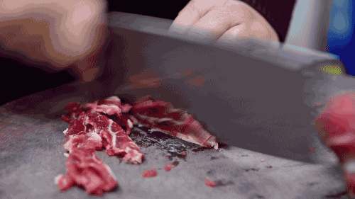 因為每一塊牛肉在製成肉丸前都要經過近30分鐘的人工捶打!直到被錘成肉糜,再捏製成丸。