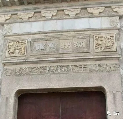 會館的頭門與戲臺合為一體,通體以磨細方磚斜角貼面,給人以秀雅與豪放兼具之感。大門居中,左右兩旁有兩邊門,大門上額書“潮州會館”四字。