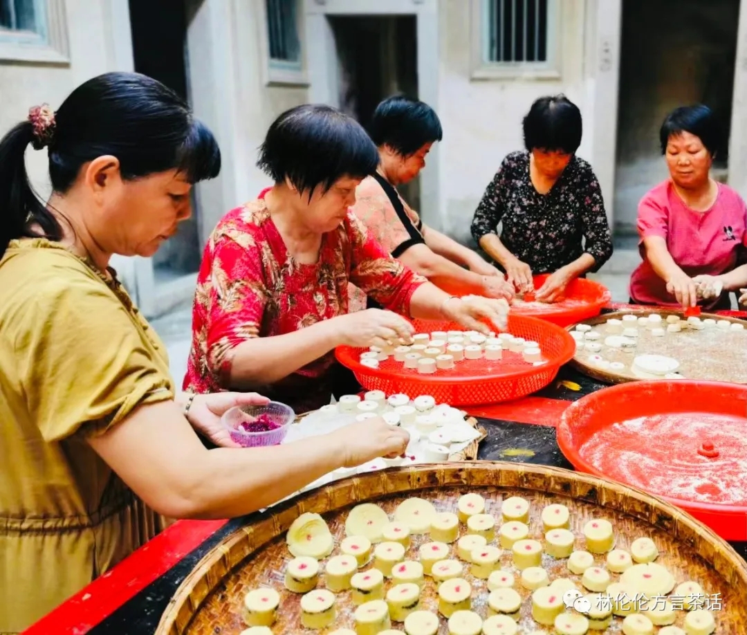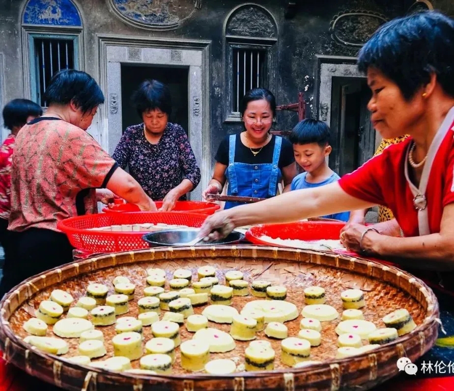 在農村裏,做糕幾乎都是 「群體性事件」,厝邊頭尾(左鄰右舍)合夥做。睦鄰關係,親密無間。(攝影:林少珩。地點:隆都龍美寨狀元先生第)