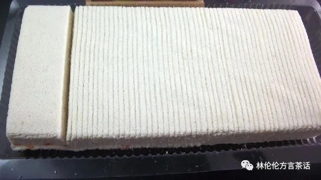 小時候,就知道澄海縣裏的書冊糕數隆都的最好吃,片兒薄而柔糯香甜。後來我到韓山師範學院工作,都年過半百了,才知道潮安龍湖古寨的雲片糕也很好吃,雪片般的潔白而柔軟清甜。據地方文獻資料記載,龍湖古寨的書冊糕是黃美和號首創,距今已有近百年的歷史了。龍湖書冊糕又名「燉糕」,據舖主介紹,製作時,將糕粉拌勻,用滾筒滾壓均勻,放在模子裏壓實,隔水蒸20分鐘,隔天開條切成片狀,再包裝成型。這20分鐘的「蒸」,潮汕人稱為 「隔水燉」,「燉糕」 之名由此而得。