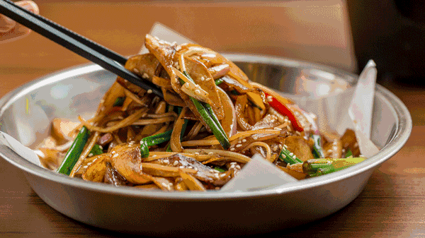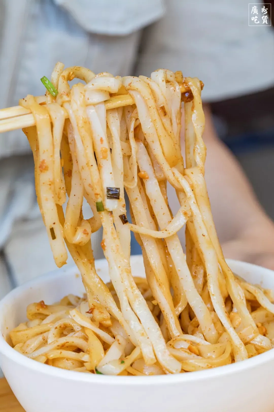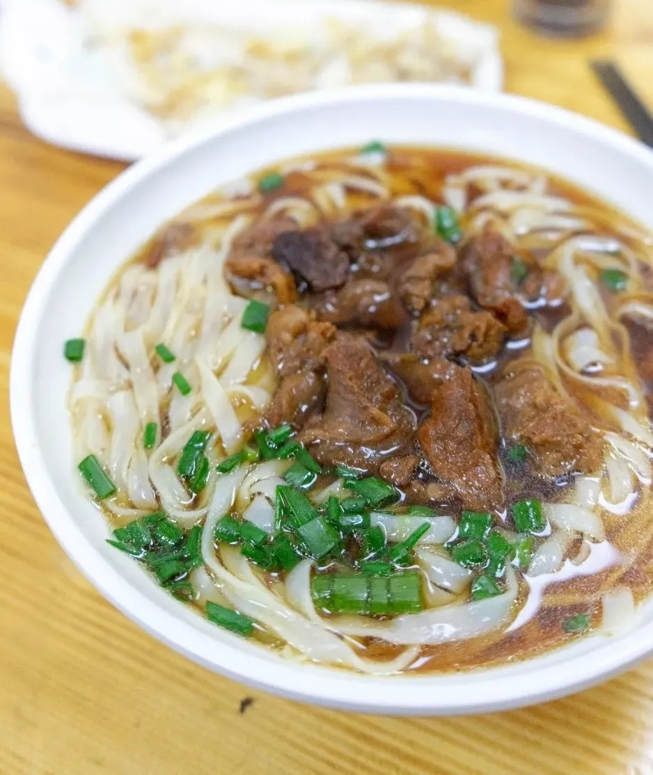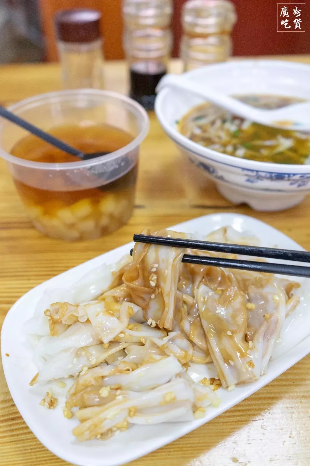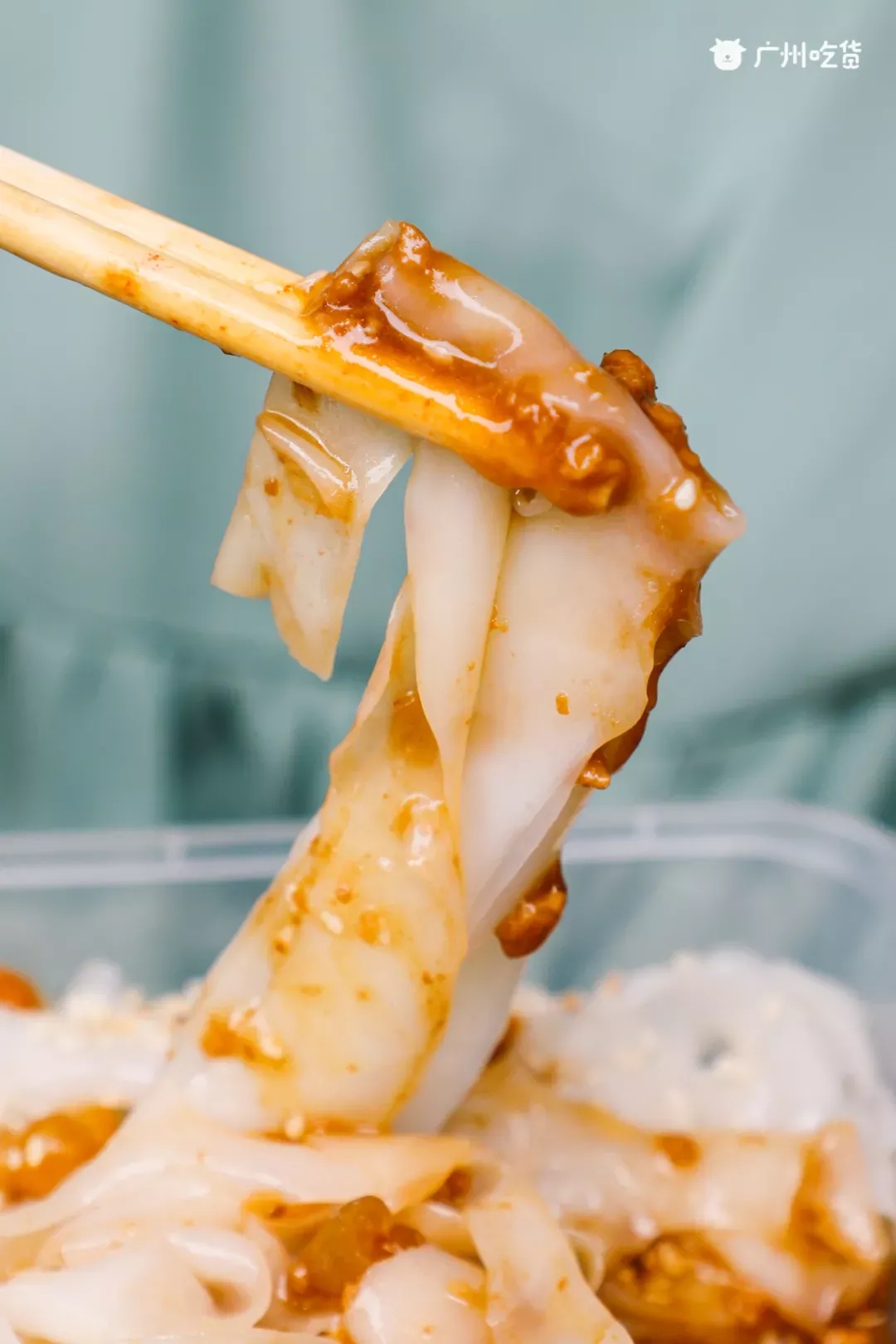 純手工製作的河粉直接淋上豉油或是牛腩、亦或是排骨,不經猛火翻炒的河粉在筷子一起一落中,被醬汁均勻裹上,嗦上一口,爽滑彈韌的河粉和鹹香的醬汁完美mix!