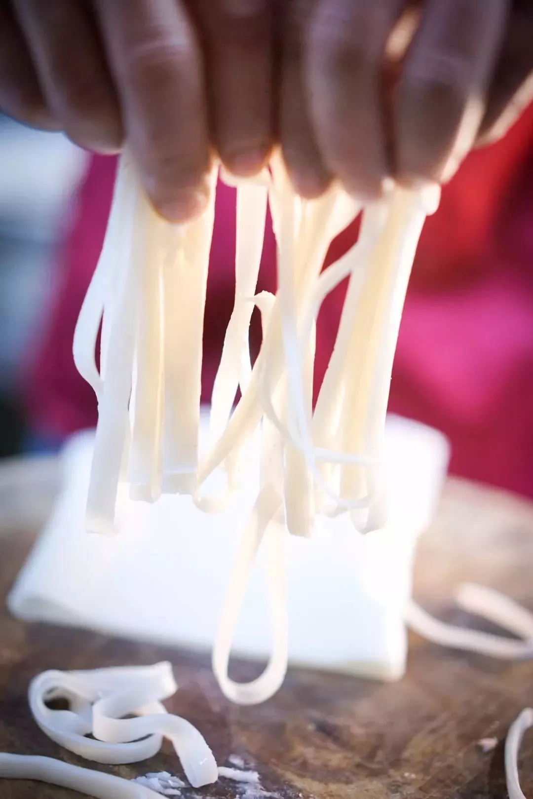 而潮汕粿條更追求米香的純粹,所以在原料調配比例中米漿的佔比會更大,薯粉和澱粉只起到定型作用。