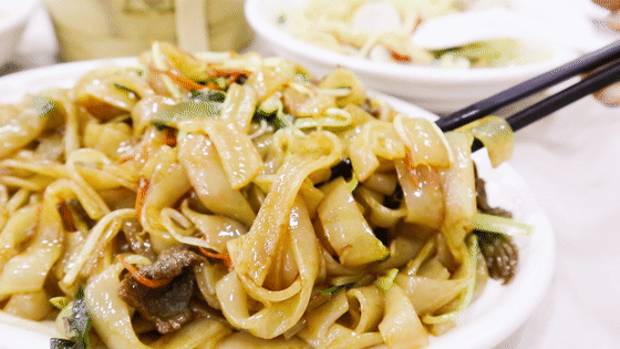 最後芥藍和粿條一同加入,讓牛肉醬汁鎖住每一條粿條,起鍋,開飯!