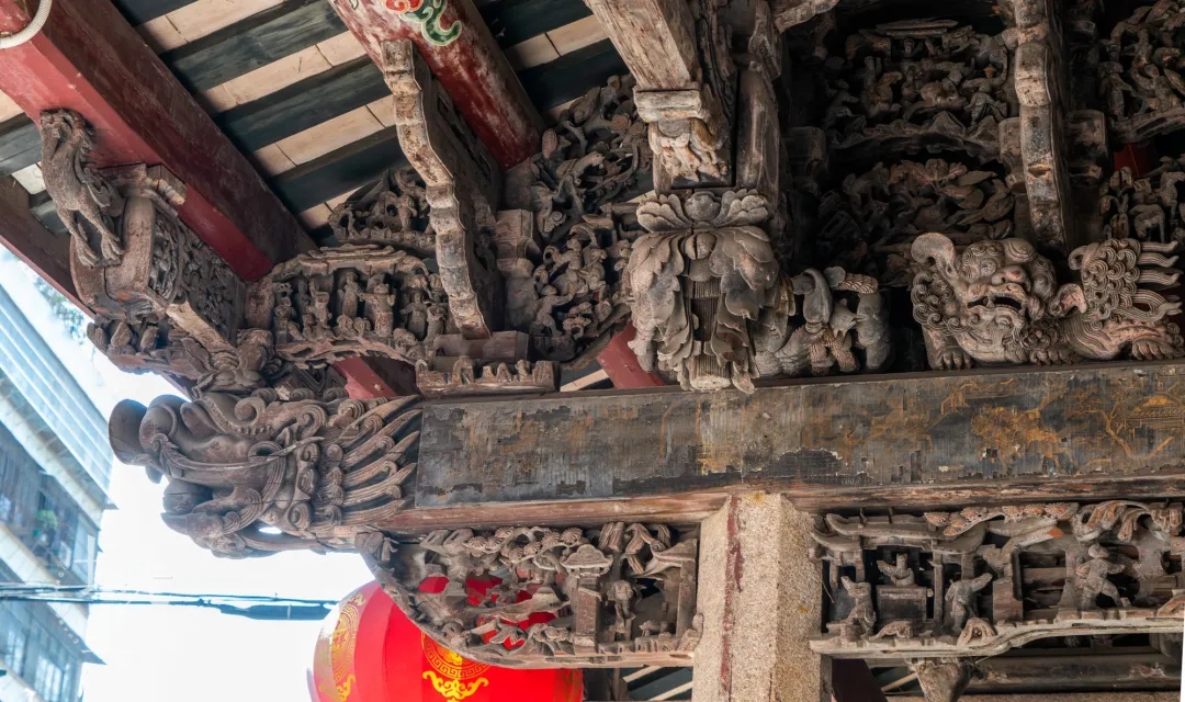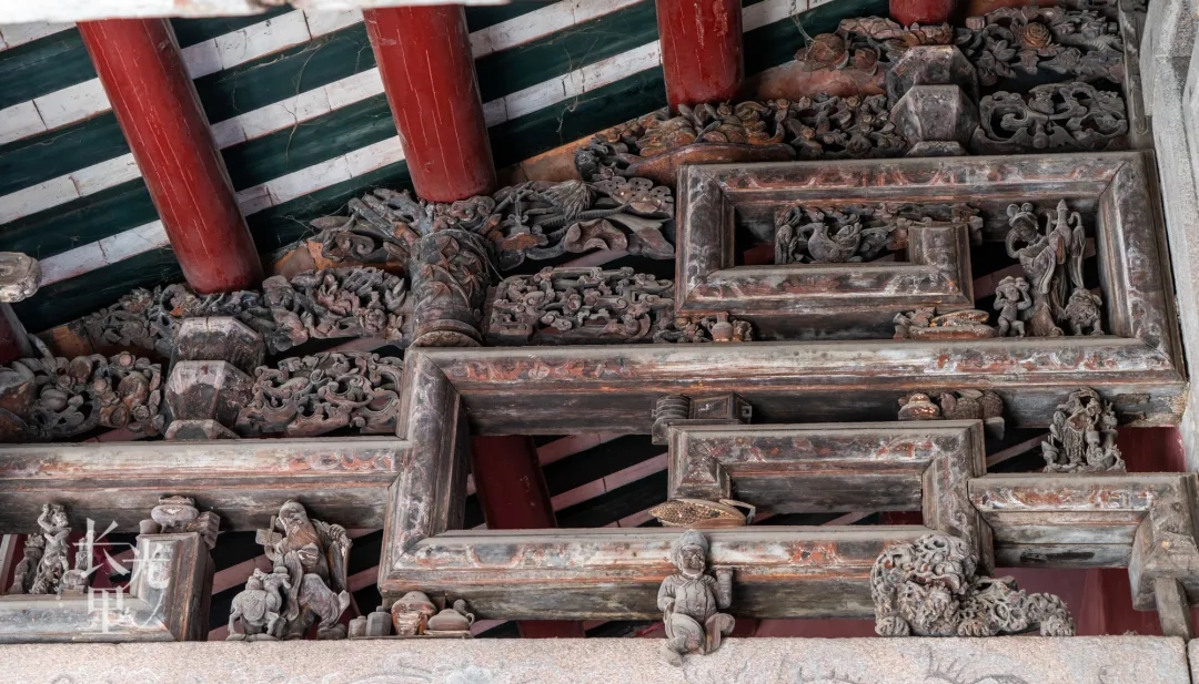 藻井之下,前廳裏的其他木雕也同樣精彩絕倫。