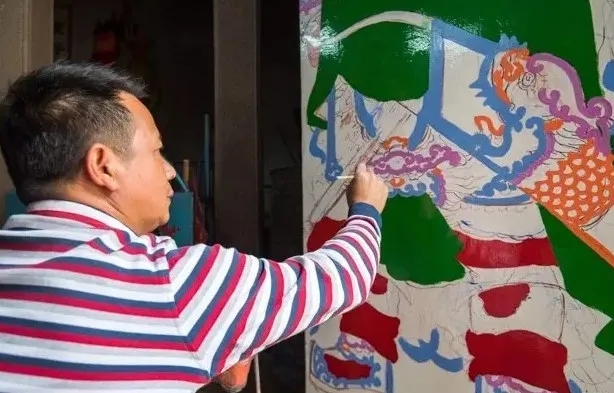 從工藝上來說,潮汕門神畫採用的是傳統漆畫技法。以天然漆為主要材料進行的繪畫創作,顏色是各種天然礦物質和金、銀、鋁箔。畫法有金銀漆畫、五彩漆畫和五彩金妝多種。