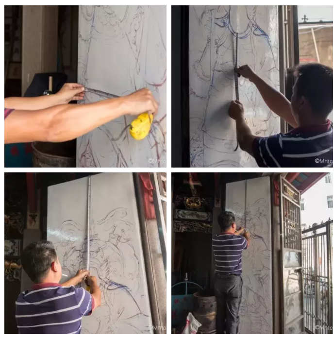 門神頭頂上門框,腳踏門檻,左右不留空隙,這樣就有一夫當關,大鬼小鬼沒法進來的感覺。在造型方面,寺廟的門神威武莊嚴,手執兵器;祠堂門神端莊慈祥,手奉如意,這是因為生怕祖宗中有膽小的,看到威嚴的門神而不敢進祠堂的緣故。