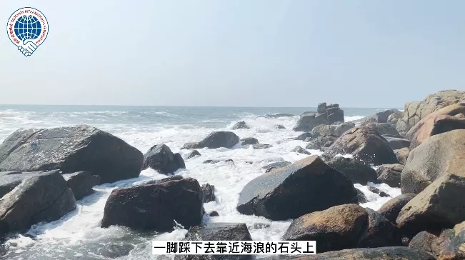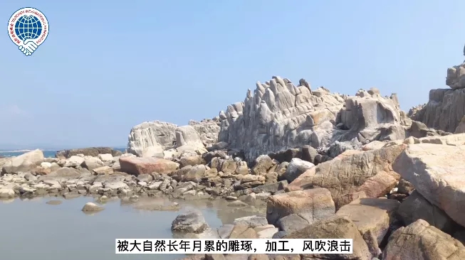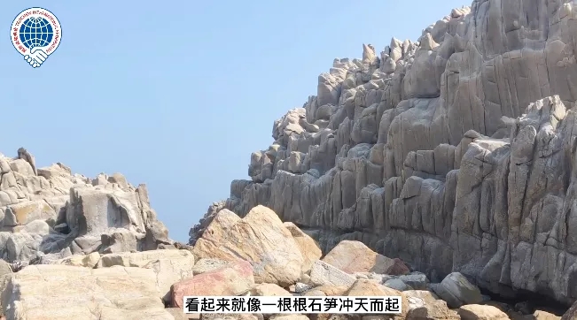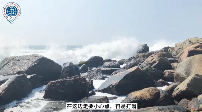 石筍區旁邊有很多純天然形狀的海石,風浪一來就能激起千層浪花,這些海石特別滑,行走的時候要小心,注意安全。