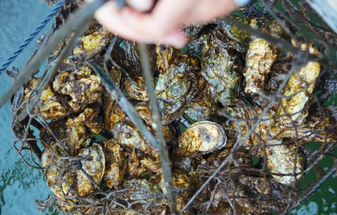 當地人告訴我們,汫洲沿海的海水鹹淡適宜,自然條件非常適合生蠔的繁衍。投苗以後讓蠔在海底舒舒服服地躺上一年,不需要操太多心來年就可以打撈。