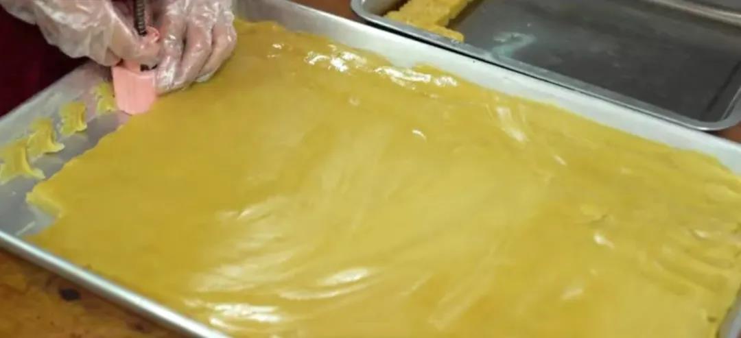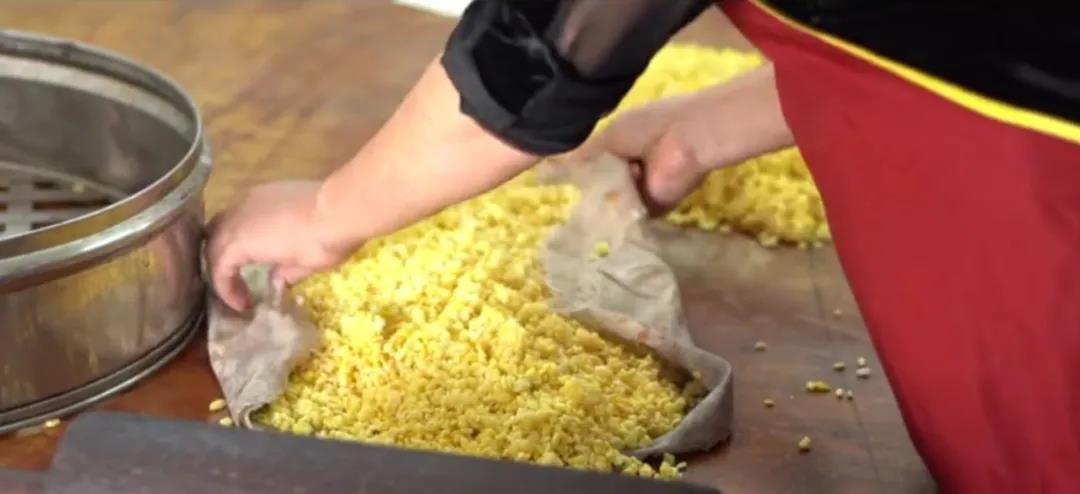 綠豆糕製作過程中,選用大粒飽滿、新鮮的綠豆,十分講究綠豆與白糖的加入順序,先蒸好綠豆再加入糖,保證綠豆糕爽口的口感;也十分講究綠豆泥狀物的細膩程度,攪拌後的綠豆泥狀物一定過篩,過篩後的綠豆細膩,無顆粒,然後壓製成型。
